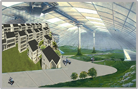 Atmosphere, environment is developed for dome residents as par their varied requirements. Now, Basic facilities are to be developed like Roads, Power supply station, Communication systems and Sewage & Water management system within Dome.